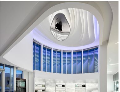 The design of this Office Building is a spectacle (pun intended). The curved exterior translates to an organic space on the inside. Structural design was paramount for this design.